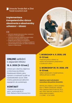 14. dubna 2026Fakulta humanitních studií Univerzity Tomáše Bati ve Zlíně zve akademické pracovníky i další zájemce na sérii setkání a workshopů zaměřených na implementaci Kompetenčního rámce absolventa a absolventky učitelství (KRAAU).