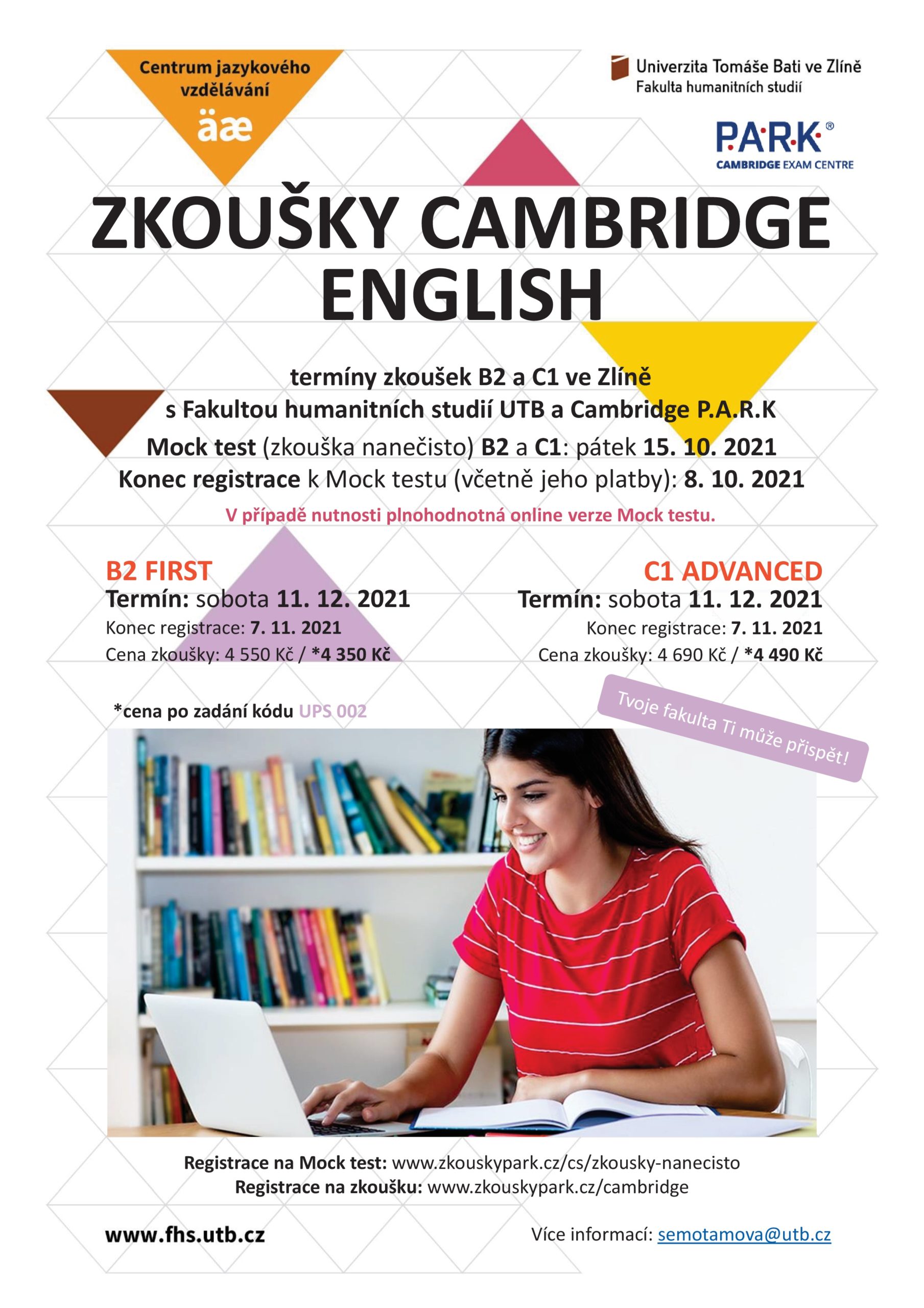 16. září 2021Termíny zkoušek úrovně B2 a C1 s Fakultou humanitních studií UTB a Cambridge P.A.R.K s místem konání ve Zlíně